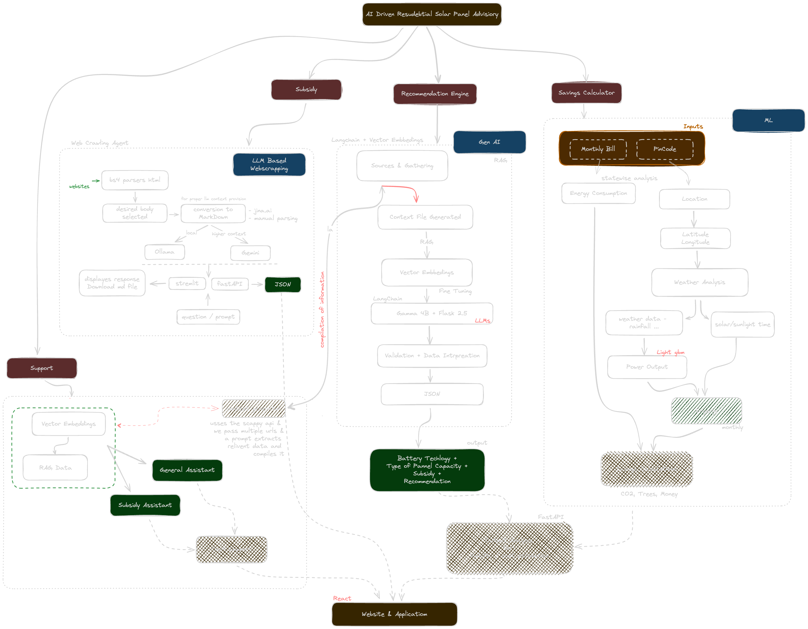 Solar Helper is an intelligent, data-driven platform designed to accelerate the adoption of residential solar energy in India. It addresses the critical information gap faced by homeowners by providing personalized recommendations, accurate financial analysis, and direct access to subsidy information, all powered by a sophisticated AI and Machine Learning backend.